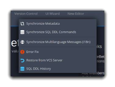 Version Control is arguably the most important tool in the application. The two tools you will use the most are Synchronize Metadata and Synchronize DB Scripts. Synchronize DB Scripts is used to synchronize database and anything other than database is synchronized by Synchronize Metadata. You can learn more in Version Control System section.